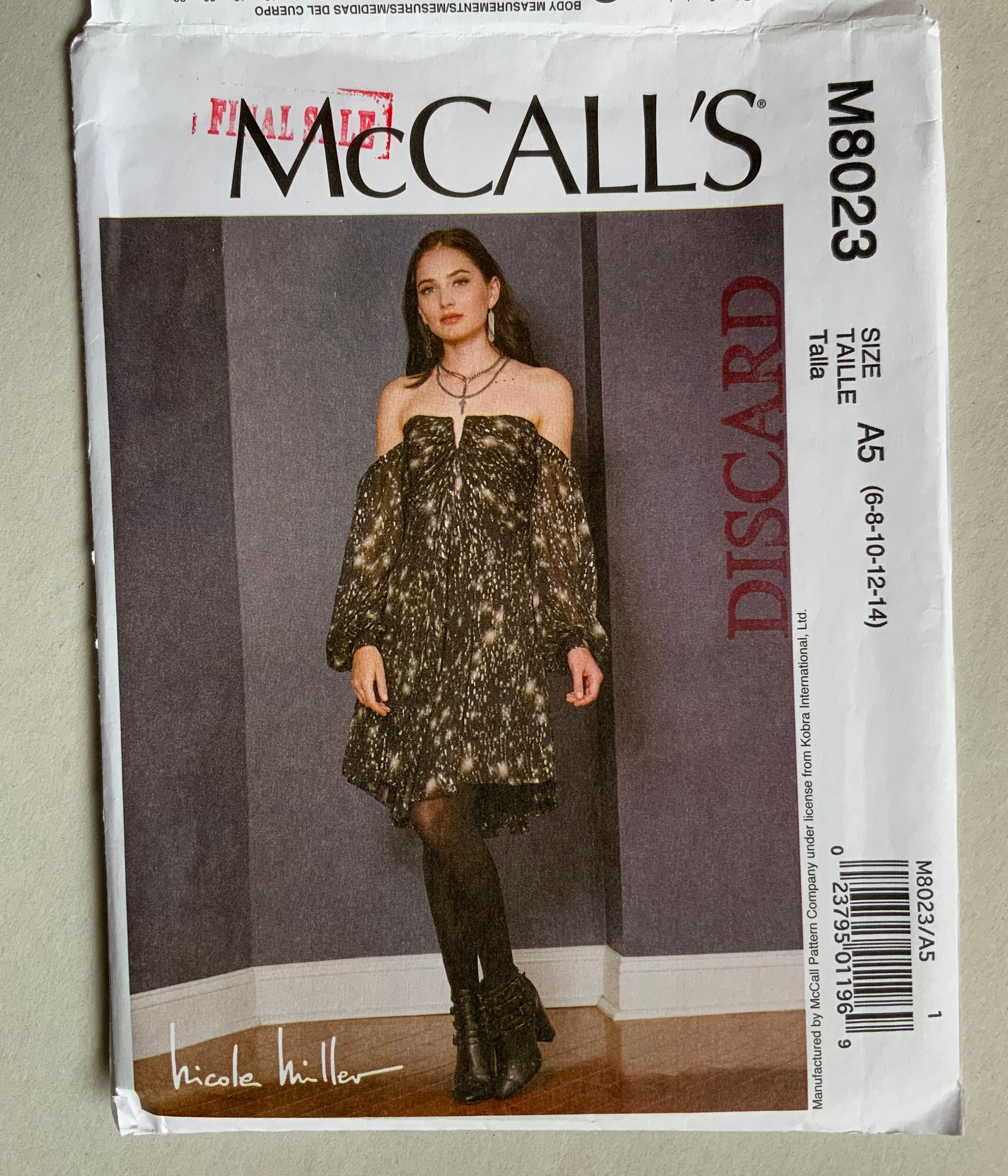 Mccalls 7505 Nicole Miller Flounce Sleeve Dress Pattern Size 6 Etsy